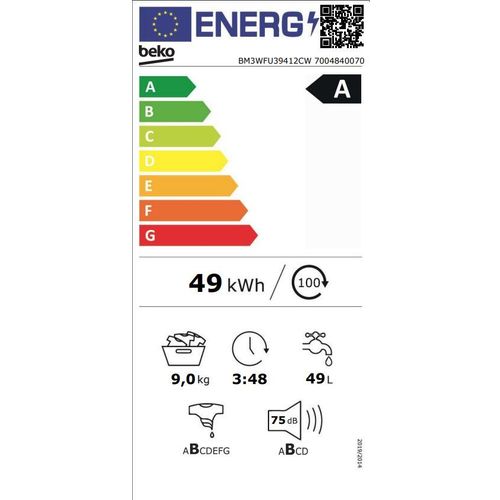 Je wast grote ladingen was in één keer met de Beko BM3WFU39412CW wasmachine. Dankzij 9 kilogram vulgewicht heb je genoeg ruimte voor een grote lading beddengoed of kleding van de hele week. Wil je maar een kleine was draaien? De beladingssensor past het programma aan op iedere was. Zo verbruik je nooit te veel. Je wast energiezuinig dankzij energieklasse A. Daarnaast hebben verschillende programma's de EnergySpin functie. Zo bespaar je nog eens 35% extra op energie. Bij weinig tijd gebruik je de 'Fast' functie bij je wasprogramma. Hiermee kort je de wasduur gemakkelijk in. Heb je je favoriete outfit echt snel nodig? Kies dan voor het Xpress programma. Zo fris je je kleding op binnen 30 minuten.