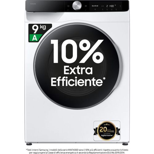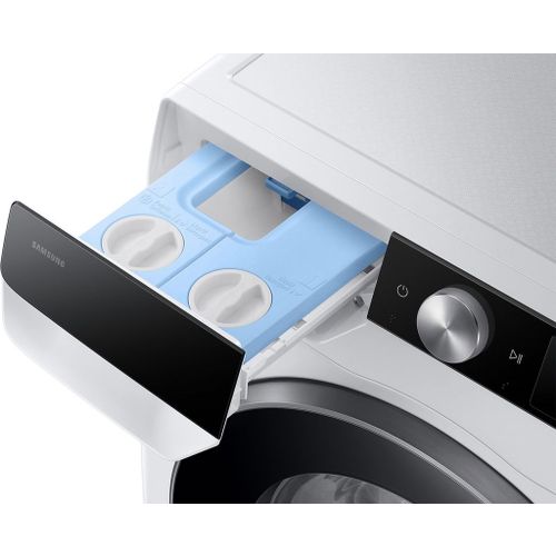Met de Samsung WW90DG6U85LK was je grote ladingen wasgoed energiezuinig. Dankzij het vulgewicht van 9 kilogram was je gemakkelijk een lading kleding van de hele week in één keer. De wasmachine past het programma automatisch aan op iedere lading, zodat je ook een kleine was zuinig wast. De AI Wash automatische wasmiddeldosering voegt zelf de juiste hoeveelheid wasmiddel en wasverzachter toe. Zo gebruik je nooit te veel en bespaar je extra op water en energie. Je bestuurt de wasmachine ook gemakkelijk via de SmartThings app. Hier download je extra programma's én zet je je wasprogramma aan op afstand. Wil je extra energiezuinig wassen? Zet dan de AI Energy Mode aan in de app. Zo wast het programma tot 70% zuiniger.